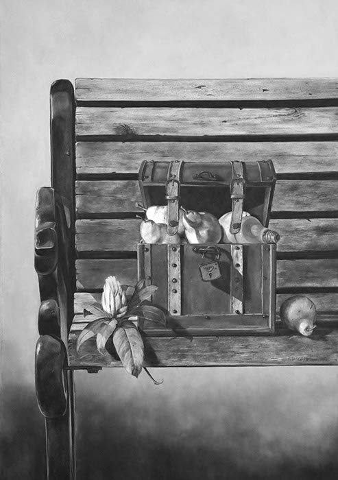 Zur Person: Dieter Hagen hat sich der Stilllebenmalerei verschrieben. Seine Bilder sind aus Gegenständen des Alltags und Fundstücken komponiert. Motive, die häufig wiederkehren, sind Dosen, Flaschen, Werkzeuge, Seile, Blüten und Früchte, die meist auf Tischen arrangiert sind. Die Hintergründe bleiben unbestimmt, während sich der Maler ganz auf die Dinge konzentriert und ihre äußere Form und Stofflichkeit mit großer Liebe zum Detail wiedergibt.