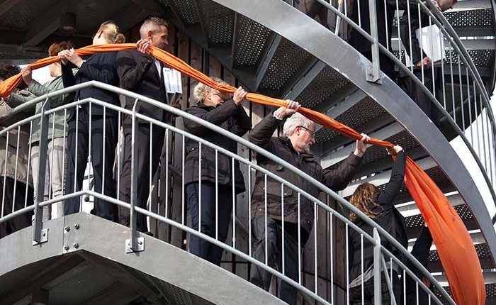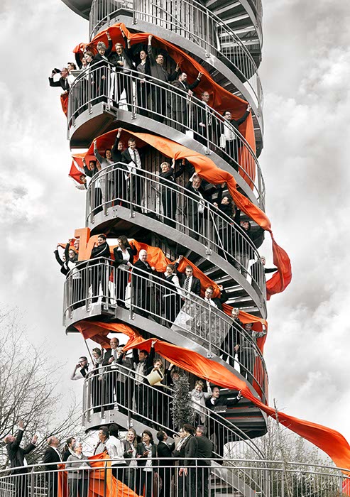Neben einer „klassischen“ Gemäldedarstellung unseres Leitbilds durch Dieter Hagen entwickelte der Wiefelsteder Fotograf Sven Tiedemann gemeinsam mit uns die Idee, die gesamte Belegschaft der Volksbank Westerstede eG in einer kunstvoll arrangierten Fotografie abzulichten.