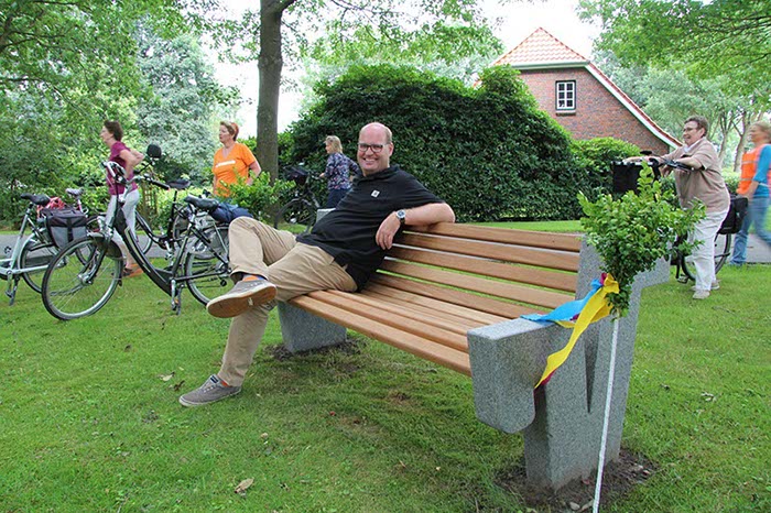 Die Route des 60km langen Radwegs führt von der Hauptstelle in Westerstede über die Filialen Ocholt, Linswege und Halsbek durch die angrenzenden Dörfer des Geschäftsgebiets. An zentralen Punkten wurden zusammen mit der Westersteder Touristik und den Ortsbürgervereinen Plätze ausgewählt, an denen jeweils eine unserer „Volksbänke“ aufgestellt wurde. Jede Bank präsentiert dabei einen der elf Leitsätze.